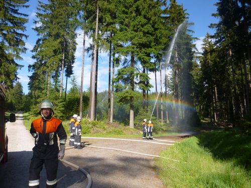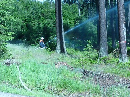 Das Thema für die Übung am 14.06.14 war ein Waldbrand, verursacht durch einen „heiß gelaufenen“ Harvester.